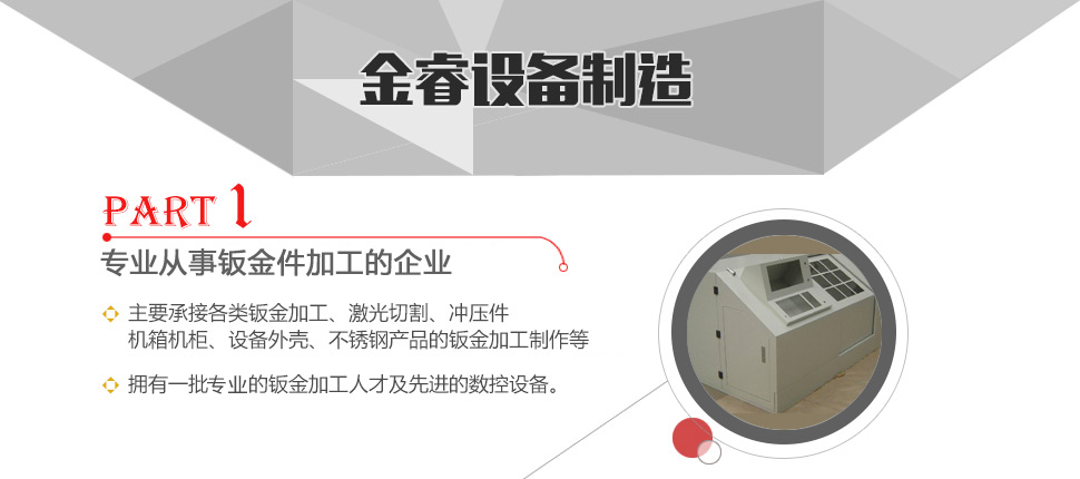 合肥金睿機械制造有限公司是一家長期從事鈑金件加工的新技術股份制企業,主要承接各類鈑金加工、激光切割、沖壓件、機箱機柜、設備外殼、不銹鋼產品的鈑金加工制作等。公司坐落于安徽省肥東縣龍塘青年工業園,距合肥繞城高速龍塘出口僅2公里,華東建材城對面,交通十分便利,地理位置優越。現擁有廠房建筑面積2000余平方米,員工30余人。   合肥金睿機械制造有限公司擁有一批專業的鈑金加工人才及先進的數控設備。主要針對:農業設備、汽車、醫療設備、金融、電信交通、新能源、電器、環保、機械、建筑裝飾、等行業的鈑金件進行加工、激光切割和表面處理等。   合肥金睿機械制造有限公司加工設備均采用進口數控沖床...